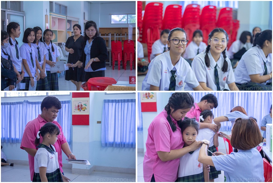 นักเรียนระดับการศึกษาขั้นพื้นฐานโรงเรียนดรุณากาญจนบุรีได้รับการตรวจสุขภาพ ฉีดวัคซีน รับยาถ่ายพยาธิ ยาเม็ดเสริมธาตุเหล็ก แบบบันทึกตรวจสุขภาพตนเอง และทรายอะเบทป้องกันลูกน้ำยุงลาย ตามความเหมาะสมและความจำเป็นของนักเรียนแต่ละระดับชั้น จากโรงพยาบาลส่งเสริมสุขภาพบ้านเขาตองพัฒนา ในวันศุกร์ที่ 22 พฤศจิกายน 2562 โดยมีคุณครูและนักเรียนชุมนุม อย.น้อยใส่ใจสุขภาพ ช่วยอำนวยความสะดวก และดูแลน้องๆ ขณะรอรับบริการ โรงเรียนขอขอบคุณในความอนุเคราะห์ และร่วมมือในการดูแลสุขภาพของนักเรียนมา ณ โอกาสนี้