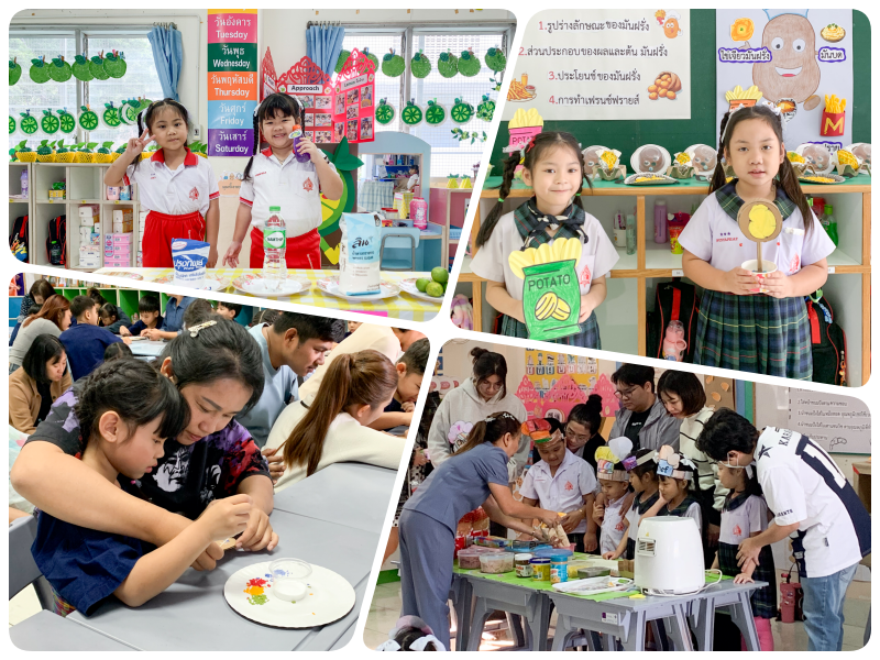 ระดับชั้นอนุบาล 3: นักสืบค้นรุ่นจิ๋วกับกระบวนการคิดที่เป็นระบบ พี่ใหญ่ของแผนกอนุบาลโชว์ผลงานการทดลองและการแปรรูปอย่างสร้างสรรค์ ได้แก่ โครงการ "เมล็ดข้าววิเศษ": เข้าใจคุณค่าของธัญพืชและแหล่งอาหารหลัก โครงการ "ชิมปัง": เรียนรู้กระบวนการทำเบเกอรี่แสนอร่อยโครงการ "Po Po Potato": เจาะลึกเรื่องราวของมันฝรั่งและการปรุงอาหาร โครงการ "มะนาวจี๊ดจ๊าด": สนุกกับการทดลองรสชาติและคุณประโยชน์ของสมุนไพรใกล้ตัว