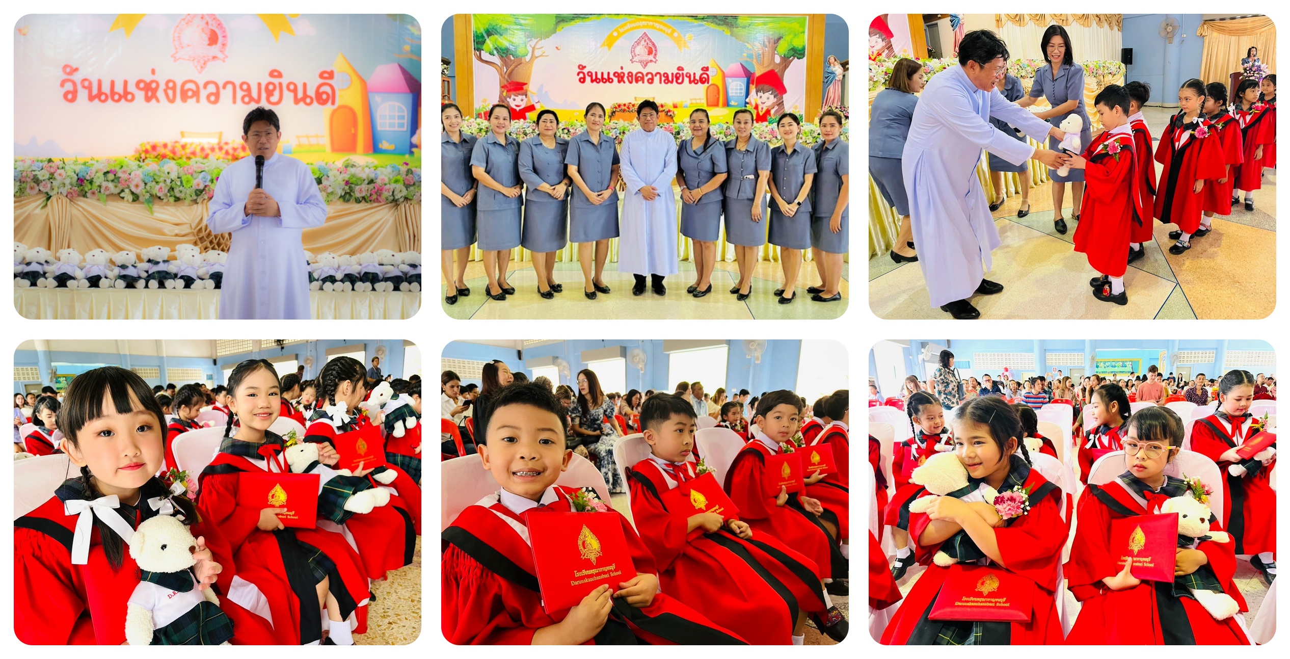 วันเสาร์ที่ 8 มีนาคม 2568 แผนกอนุบาลโรงเรียนดรุณากาญจนบุรีได้จัดกิจกรรมวันแห่งความยินดีให้กับนักเรียนที่จบหลักสูตรการศึกษาปฐมวัย ประจำปีการศึกษาที่ 2567 จำนวน 132 คน เพื่อเป็นการสร้าง ความภาคภูมิใจให้กับนักเรียนและผู้ปกครองโดยคณะครูได้จัดซุ้มถ่ายภาพและมีตัวแทนนักเรียนระดับชั้นอนุบาลปีที่ 1 - ระดับชั้นอนุบาลปีที่ 2 และนักเรียนระดับชั้นประถมศึกษาปีที่ 1 เข้าร่วมแสดงความยินดีในกิจกรรมนี้ด้วยรอยยิ้มแห่งความสุขและความภาคภูมิใจ