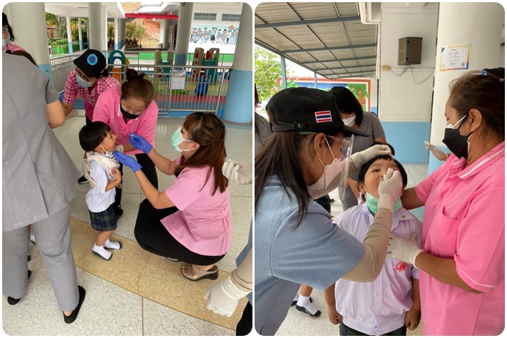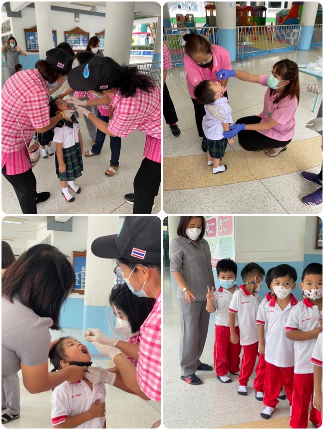 โรงพยาบาลส่งเสริมสุขภาพตำบลบ้านเขาตองพัฒนาดำเนินการหยอดวัคซีนป้องกันโรคโปลิโอให้เด็กระดับชั้นเตรียมอนุบาลถึงระดับชั้นอนุบาล 3 โรงเรียนดรุณากาญจนบุรี ครั้งที่ 1 จำนวน 235 คน ในวันพุธที่ 29 ธันวาคม 2564 โดยนางสาวศศิธร ไผ่สะอาด (หมอติ๊ก) เจ้าหน้าที่สาธารณสุข และอาสาสมัครสาธารณสุขร่วมกันให้บริการหยอดวัคซีน ทั้งนี้ เพื่อเป็นการป้องกันการระบาดของโรคโปลิโอ สายพันธุ์วัคซีนกลายพันธ์ (VDPV) ที่กำลังระบาดในประเทศเพื่อนบ้าน และจังหวัดกาญจนบุรีเป็นจังหวัดติดชายแดนที่มีความสุ่มเสี่ยง ผู้บริหาร คณะครู ผู้ปกครอง และเด็ก ๆ โรงเรียนดรุณากาญจนบุรีขอขอบพระคุณมา ณ โอกาสนี้