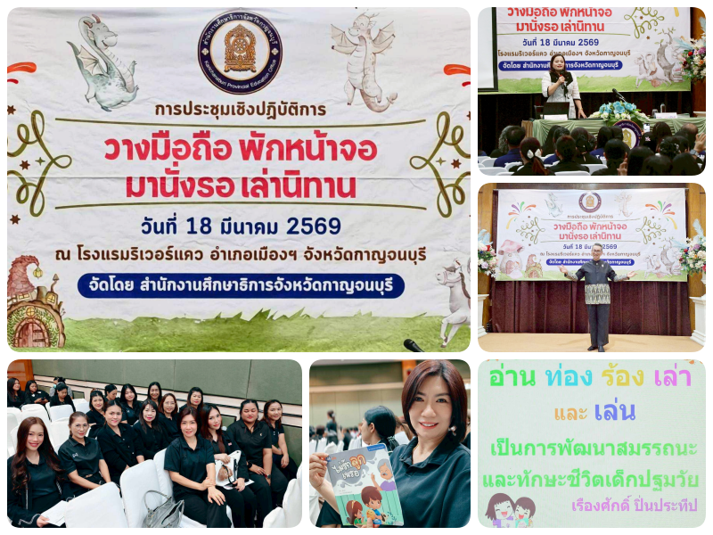 4 วันพุธที่ 18 มีนาคม 2569 ครูแผนกอนุบาลได้เข้าร่วมการประชุมเชิงปฏิบัติการ “วางมือถือ พักหน้าจอ มานั่งรอ เล่านิทาน” ณ ห้องประชุมสังขละบุรี โรงแรมริเวอร์แคว อำเภอเมืองกาญจนบุรี จังหวัดกาญจนบุรี โดยมีนางปัถมา ดวงแก้ว ศึกษาธิการจังหวัดกาญจนบุรี เป็นผู้กล่าวรายงาน และได้รับเกียรติจากนายเรืองศักดิ์ ปิ่นประทีป (อาจารย์ตุ๊บปอง) เป็นวิทยากรให้ความรู้และถ่ายทอดประสบการณ์อย่างใกล้ชิด
