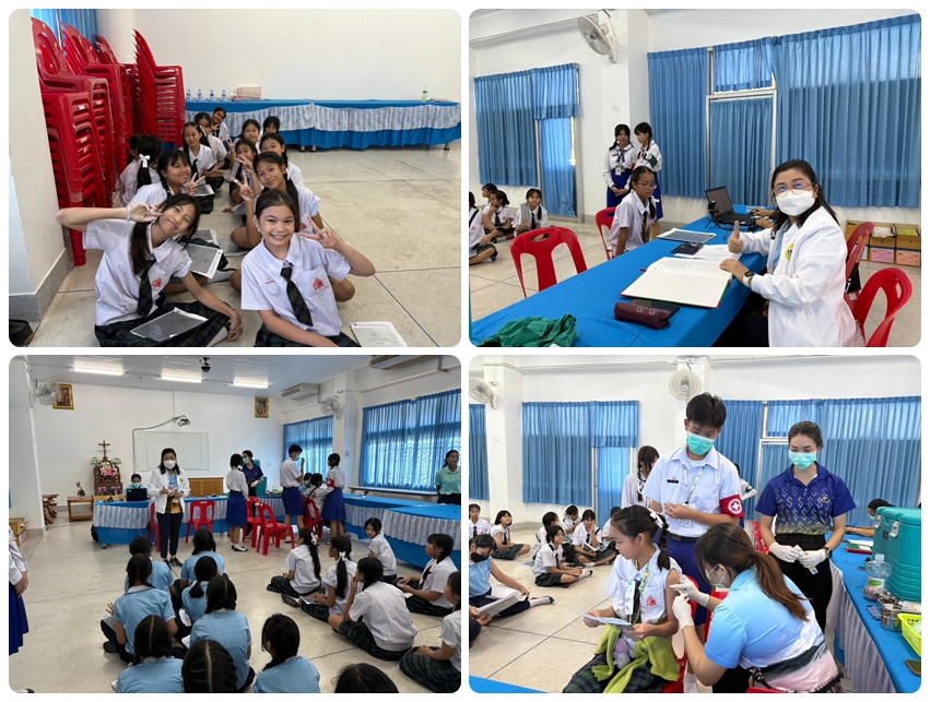 โรงพยาบาลส่งเสริมสุขภาพบ้านเขาตองพัฒนาให้บริการด้านสุขภาพนักเรียนโรงเรียนดรุณากาญจนบุรี เมื่อวันศุกร์ที่ 7 กุมภาพันธ์  2568  เวลา 09.00 – 11.00 น. ณ ห้องโสตทัศนศึกษา อาคาร 2 โดยนักเรียนหญิงระดับชั้นประถมศึกษาปีที่ 5  ได้รับการตรวจสุขภาพและฉีดวัคซีนเอชพีวี Human Papillomavirus สายพันธุ์ 16 และ 18 เข็มที่ 1 โดยมีนักเรียนชุมนุม อย.น้อย ช่วยอำนวยความสะดวกและดูแลน้องๆ ขณะรับบริการ