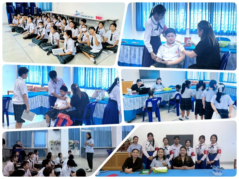 โรงพยาบาลส่งเสริมสุขภาพบ้านเขาตองพัฒนาให้บริการด้านสุขภาพนักเรียนโรงเรียนดรุณากาญจนบุรี เมื่อวันศุกร์ที่ 27 กุมภาพันธ์  2569  เวลา 09.00 – 12.30 น. ณ ห้องโสตทัศนศึกษา อาคาร 2 โดยนักเรียนระดับชั้น ป.1 ได้รับการตรวจสุขภาพและฉีดวัคซีนป้องกันโรคหัด หัดเยอรมัน คางทูม (MMR) จำนวน 1 เข็ม นักเรียนหญิงระดับชั้นประถมศึกษาปีที่ 5  ได้รับการตรวจสุขภาพและฉีดวัคซีนเอชพีวี Human Papillomavirus 9 สายพันธุ์ (ป้องกันมะเร็งปากมดลูก) จำนวน 1เข็ม  และนักเรียนระดับชั้นประถมศึกษาปีที่ 6 ได้รับการตรวจสุขภาพและฉีดวัคซีนโรคคอตีบ บาดทะยัก (dt) จำนวน 1 เข็ม โดยมีนักเรียนแกนนำชุมนุม อย.น้อย ช่วยอำนวยความสะดวกและดูแลน้องๆ ขณะรับบริการ