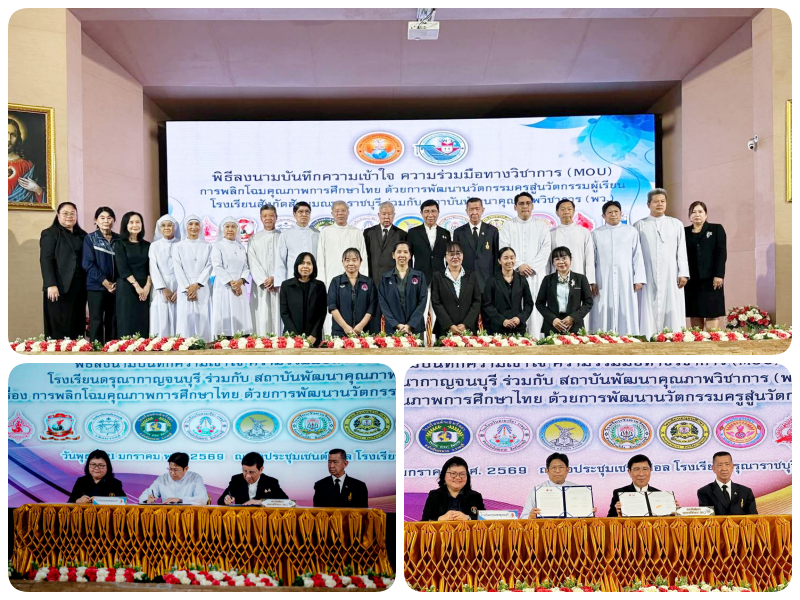 วันที่ 21 มกราคม 2569 บาทหลวง ดร.สุรินทร์  จารย์อุปการะ ผู้อำนวยการโรงเรียนดรุณากาญจนบุรี ร่วมลงนามความร่วมมือทางวิชาการ (MOU) กับสถาบันพัฒนาคุณภาพวิชาการ (พว.) ณ หอประชุมเซนต์ปอล โรงเรียนดรุณาราชบุรี พร้อมกับผู้บริหารสถานโรงเรียนในสังกัดสังฆมณฑลราชบุรี  เป็นการพัฒนาส่งเสริมคุณภาพการศึกษา ด้วยกระบวนการเรียนการสอนแบบผู้เรียนสร้างความรู้ด้วยตนเอง (Active Learning) ด้วยกระบวนการคิดขั้นสูงเชิงระบบ (GPAS 5 Steps) ให้เป็นผู้นำทางวิชาการในการพัฒนาสมรรถนะผู้เรียนทุกคน ทั้งในระดับชั้นปฐมวัย ประถมศึกษา และมัธยมศึกษา ให้มีพัฒนาการเต็มศักยภาพ มีคุณภาพและมีทักษะการเรียนรู้ในศตวรรษที่ 21 โดยร่วมกันพัฒนานวัตกรรมการบริหารจัดการ และการจัดการเรียนรู้ให้ก้าวทันต่อการเปลี่ยนแปลงของวิทยาการการเรียนรู้ (Learning Science) การยกระดับคุณภาพด้วยการพัฒนาครูตามหลักสูตรแนวใหม่ ให้สอดคล้องสัมพันธ์กับความก้าวหน้าของการจัดกระบวนการเรียนรู้ ที่เน้นความแตกต่างทางพหุปัญญาอย่างมีคุณภาพ และมีทักษะการเรียนรู้ในศตวรรษที่ 21 รายงานโดย นางสาวพรทิพย์  ทองรอด